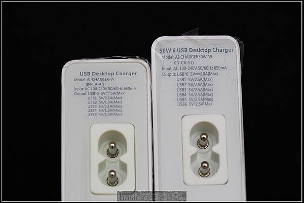 每一孔的輸出都不一樣 , 其中USB1跟USB3可以輸出2.1A , USB2是1.3A , USB4跟USB5是1.0A..