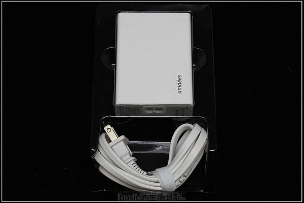 內包裝中有充電器本體跟一條標準的電源線 , 標準的插頭就不會佔用到旁邊的插座了..真的是比較方便..