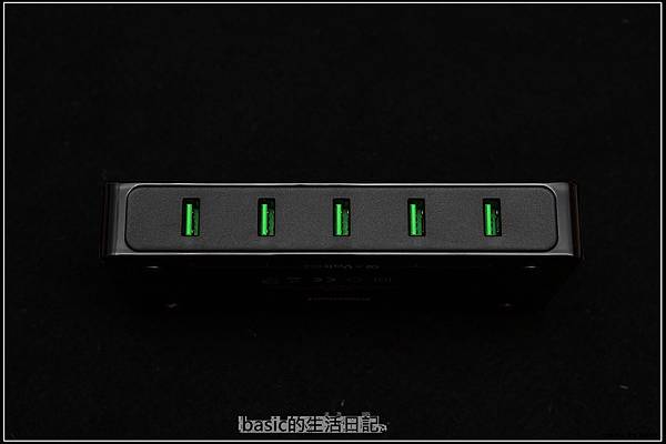 看到沒有 , 五孔都是綠色的呦 , 全都都可以QC2.0輸出