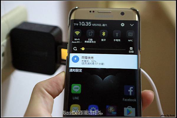 插上S7 edge , 手機上馬上顯示閃電快充..