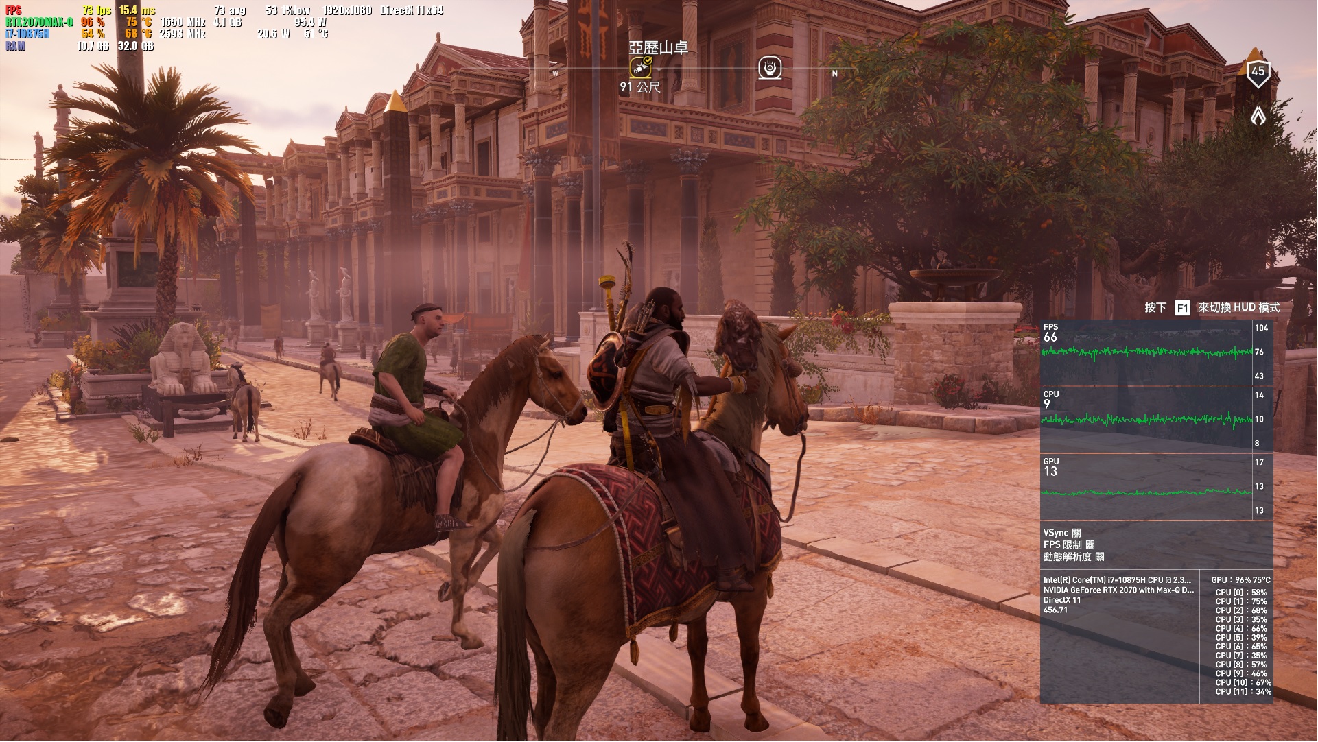 捷元17R玩刺客教條 起源,CPU占用只有54%,20.6瓦,哎呀怎麼狂推的筆電也沒跑滿