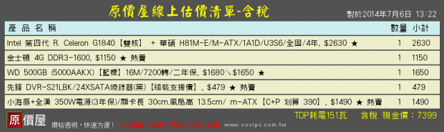 | TDP耗電151瓦 含稅 現金價:7440 | ||||