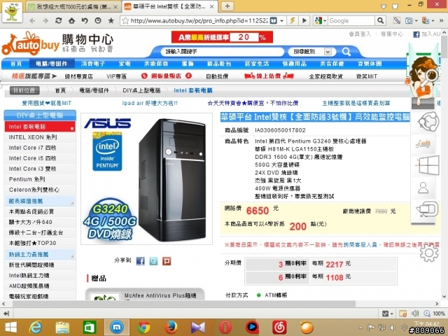 | 處理器 CPU | Intel 第四代 R. Celeron G1840【雙核】2.8GHZ/2M快取/54W, $1180 ★ |