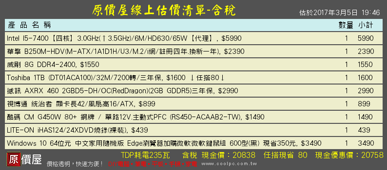 jaw949 wrote:小弟第一次自組~請...(恕刪) 要玩暗黑還是 NBA 的話還是捏一點買顯卡吧也可以考慮 cpu 換 G4560,卡直接上 470 順便多買條 RAM 湊 16gD 燒有用到再買就好