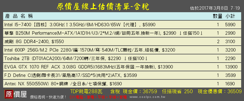 RAM建議改2400然後確實一下相容性,600P可考慮換成MX300或UV400其他的可以沒太大意見