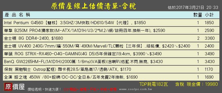 zzz8798765 wrote:平常逛網拍 希望網...(恕刪) i5, 16g螢幕可以考慮改拿 BenQ GW2265HM-FL (VA, 三介面, 有喇叭)覺得沒顯卡不放心的話,改 g4560 + rx460