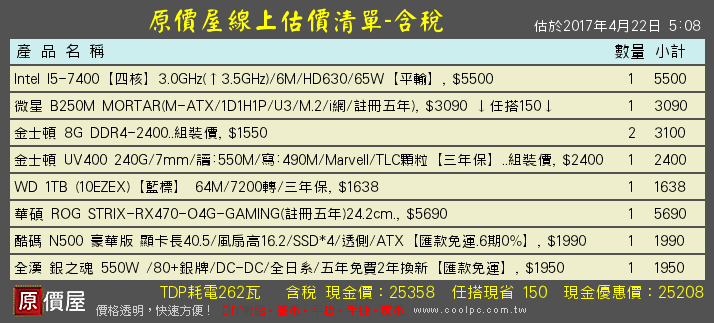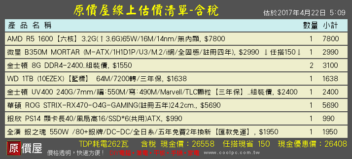 Arizinpaul wrote:請各位大大幫我看看...(恕刪) intel 那張拿 7400 就好, SSD 換 UV400 或 MX300, 拿 240g 以上的DDR4 拿 2400 雙 8, 也可以考慮單條 16沒特別理由要買 intel 就選 r5 那張