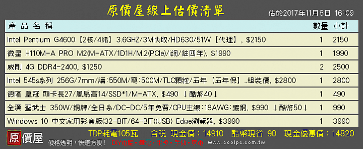 徵求15K組電腦菜單(含作業系統不含螢幕)