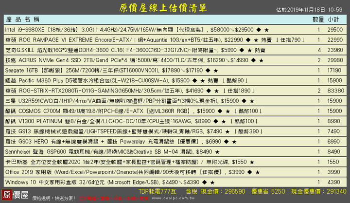 因為家裡電腦用久了,想換好點可以撐久點,煩請幫忙健檢一下菜單,I9-9980XE用空冷是否不足要改用水冷嗎,請大神可否推薦