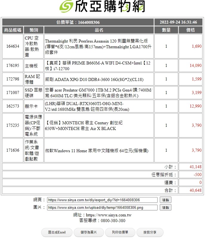 再請各位大大幫忙配一下單給我參考