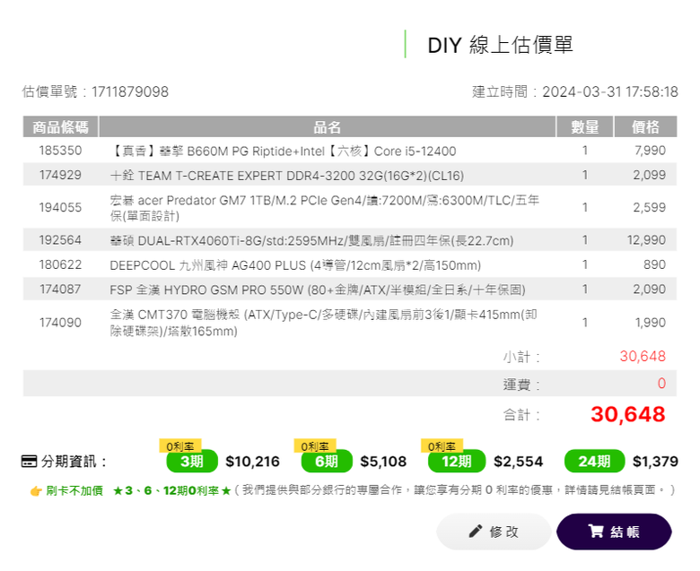 不含作業系統hatter36 wrote:預計會裝3科舊的3.5HD 全漢CMT370才裝得下3顆3.5吋硬碟2樓和4樓的機殼都不行hatter36 wrote:需要裝M2硬碟散熱器嗎? 主板內附的散熱片即可