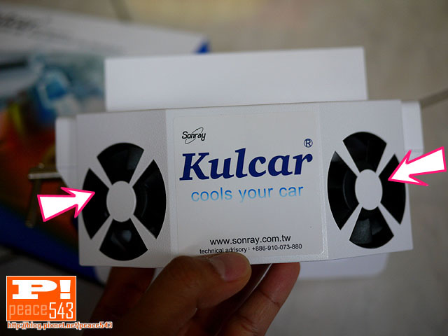 其實要是仔細看,這款kulcar太陽能汽車散熱器是很用心在設計的,她連出風口的鰭片角度,都不是直直出風而已,反而是往左右兩旁錯開的,這樣效率應該是更好才是。