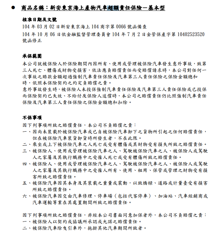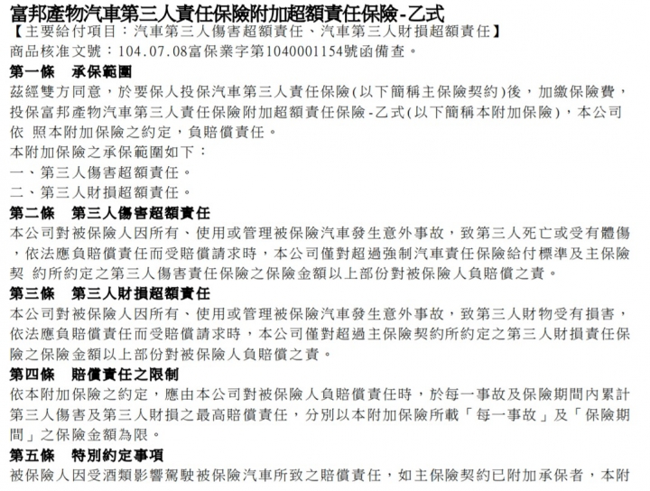 但這樣也不對啊,如果是這樣,那只要寫保險其間金額就好,何必多寫個「每一事故」? 兆豐的也沒這樣寫