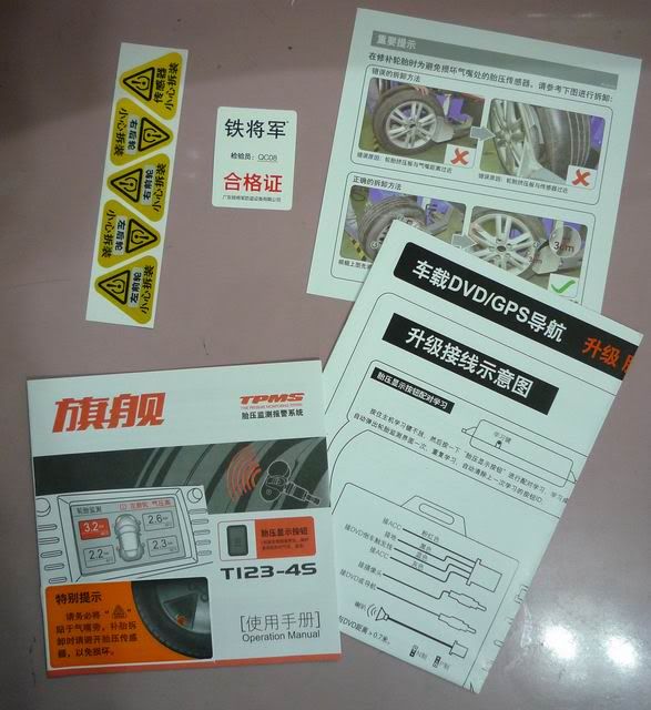 還不錯附送TPMS裝置警告貼紙.警示拆輪胎時注意TPMS發射器(缺失:多貼上哪一輪的銀色貼紙,可撕掉這部分)....不知國產品有嗎?