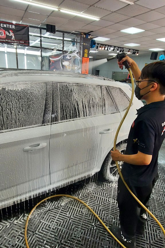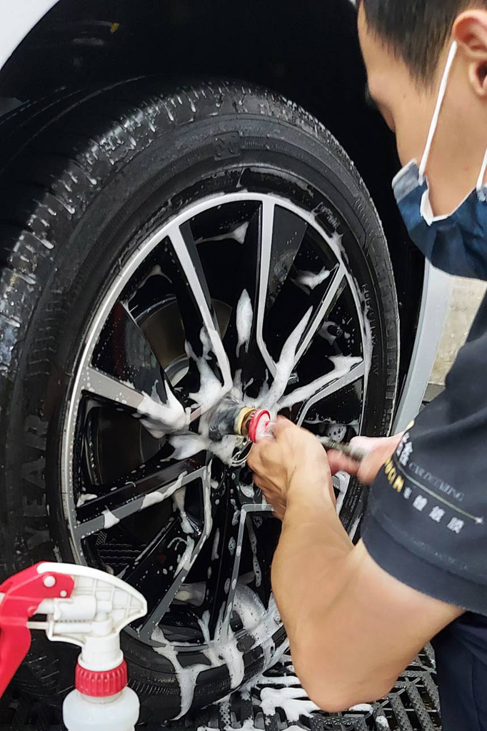 ▼光是泡沫洗車,就高達三次!!!包含胎皮清潔、鋼圈清潔、柏油處理、鐵粉處理、全車細縫處細節刷再清潔等等步驟,這費工的前置作業,我前所未見!!