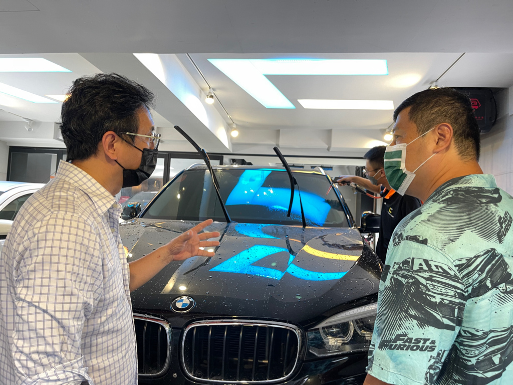 鍍膜當天老闆剛好在店內,便很詳細的介紹了高科技汽車鍍膜KubeBond流程、他們家的特色。