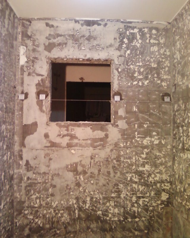 廚房、餐廳:鋁窗窗框及後陽台鋁門門框裝上,牆壁粉光完成的狀況。