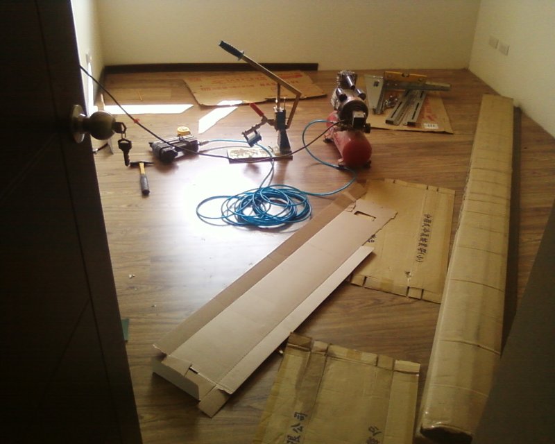 地板:利用中午回家監工,一進家門嚇一跳,到處躺了body,還想說發生蝦米代誌~~原來是師傅們在午休......
