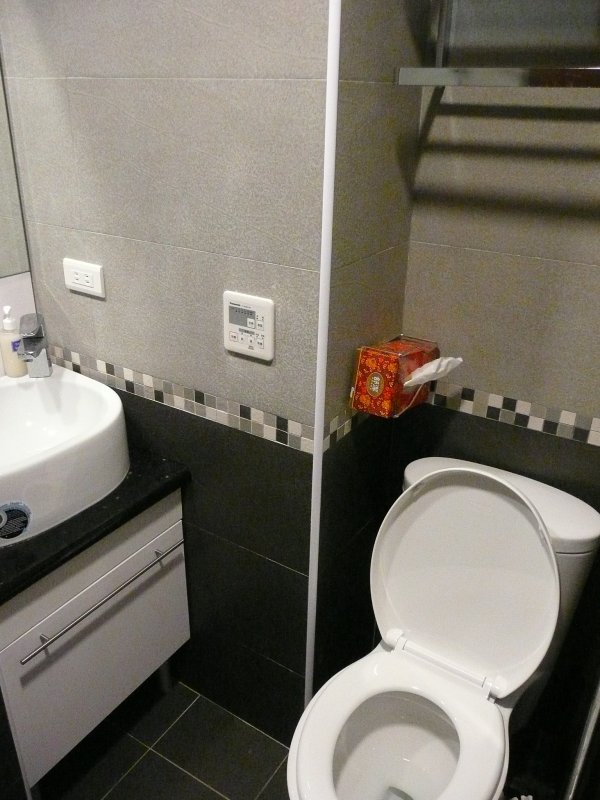 浴室廁所:裝了Panasonic的浴室空調機,經過幾次寒流的測試後,確實效果不錯,不過木作師傅燈光的位置讓我小小不滿,一點美感和協調性都沒有,fu都被破壞掉了。