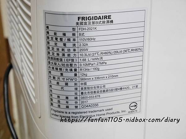 富及第 除溼機上有詳細的產品標示及說明,讓人使用起來更安心