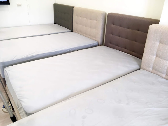 進到門內,店內整潔明亮的空間讓人感覺很舒服,陳設很單純,主要是一張張以防塵套包好的各種款式床墊,而且全店只有接待我們一家,很有貴賓的尊榮感,也顧及了客人的隱私。