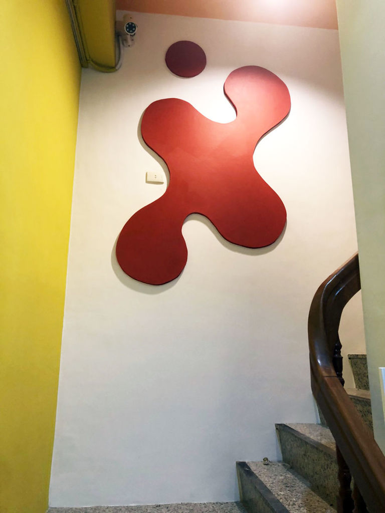 樓梯則以一個抽象形狀做點綴,讓白色牆面不單調!