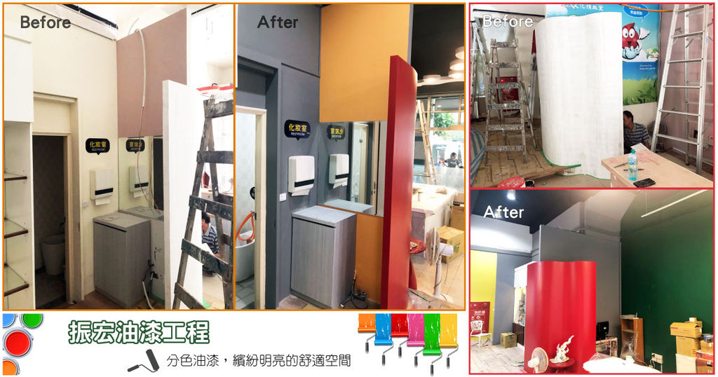 重新粉刷後的感覺讓人煥然一新,學生們在充滿色彩的學習環境,既舒適又激發想像力~振宏則是使用無毒油漆,專業的粉刷技術,俐落又快速,鄰居說施工後環境也都乾淨恢復,值得推薦的工程行!