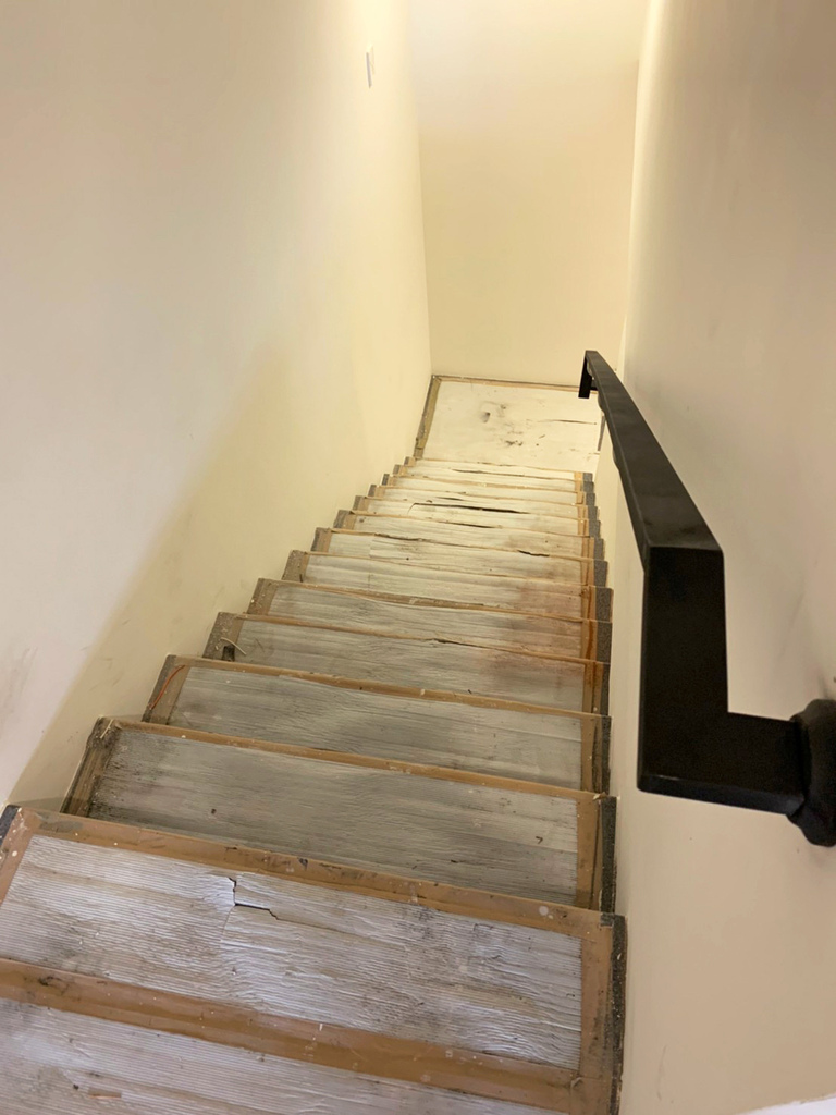 ▼樓梯間的防護墊清掉,樓梯手把清潔師傅也一一擦過,每根柱子、每個細縫角落都全面細節清潔,我覺得真的是很講究細節的清潔團隊