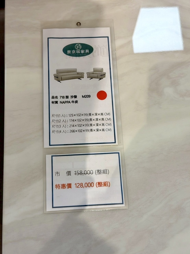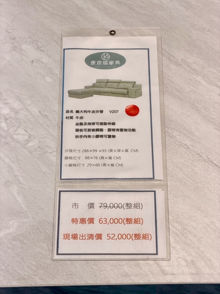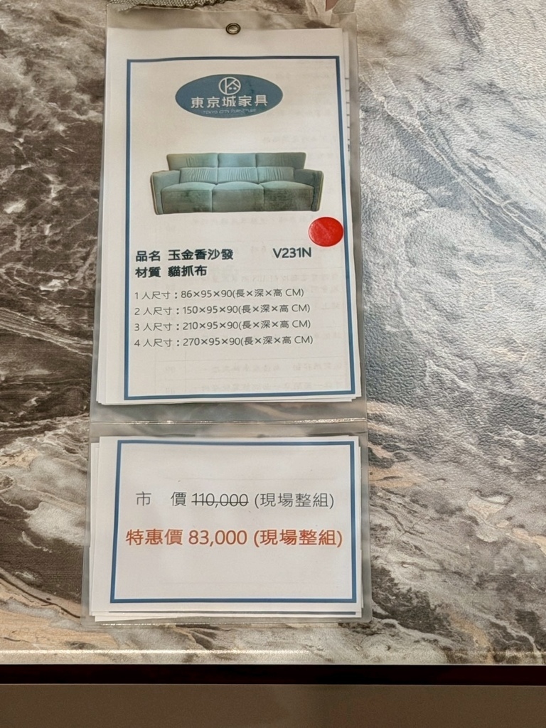走進東京城的賣場,我真的被他們的環境設計驚艷到!🌟 整個空間明亮又寬敞,動線規劃得超級聰明,超過一半的區域都是沙發展示區,讓你可以輕鬆比較坐深、扶手厚度、腳座高度等細節,完全不怕逛得頭暈眼花!😌 每款沙發旁邊還有清楚的價格和規格標示,對於像我這種愛做功課的人來說,簡直是省時又省力!💡 更別提他們的展示品出清活動,價格透明到讓人覺得誠意滿滿,逛起來心情超好!
