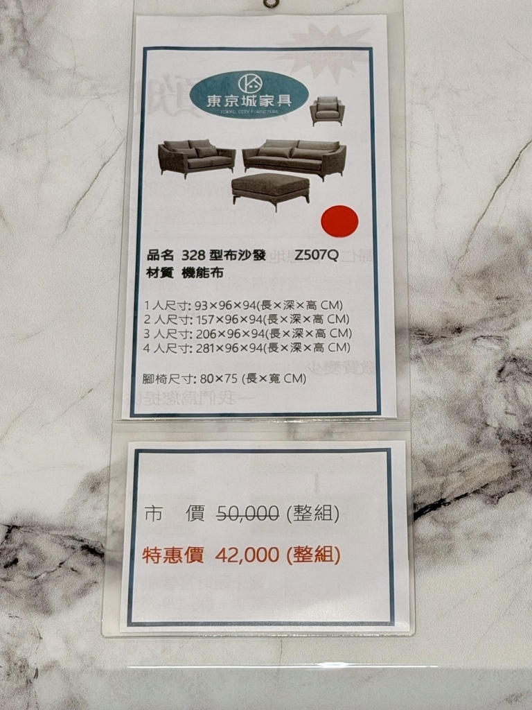 328型機能布沙發是實用派設計的經典款!😊 這款沙發支撐均勻、起身超輕鬆,對長輩來說特別友善!從坐姿到半躺切換超順暢,實用性滿分!布料耐磨又舒服,還有兩種顏色可選,價格親民到讓人驚喜!東京城的這款沙發真的把家庭需求考慮得無微不至,逛到這款時我真的超心動!💖出清價格參考:特惠價 $42,000;再8折 ≈ $33,600