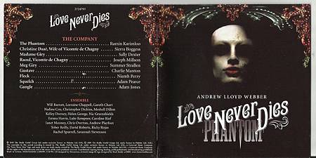 咱們的洛伊韋伯大爺也按照歷史的定律,寫了這部《真愛無盡》(Love never Dies)芭樂音樂劇,還「很快」發行音樂劇Live DVD喔!(「很快」發行DVD就代表這部劇很快就要下檔了!趁大家對他還有一點印象時,撈一點錢回本!)