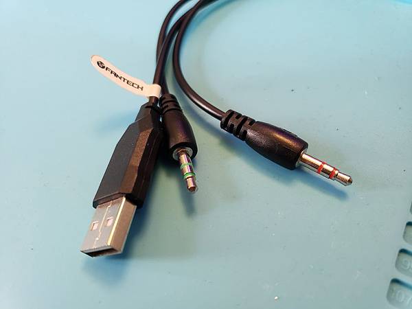 接頭有麥克風插頭(紅) 音頻插頭(綠) 和USB供電插頭。