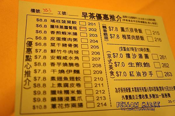 這是早茶有優惠的菜單,點餐的方式直接畫好單給服務生就好