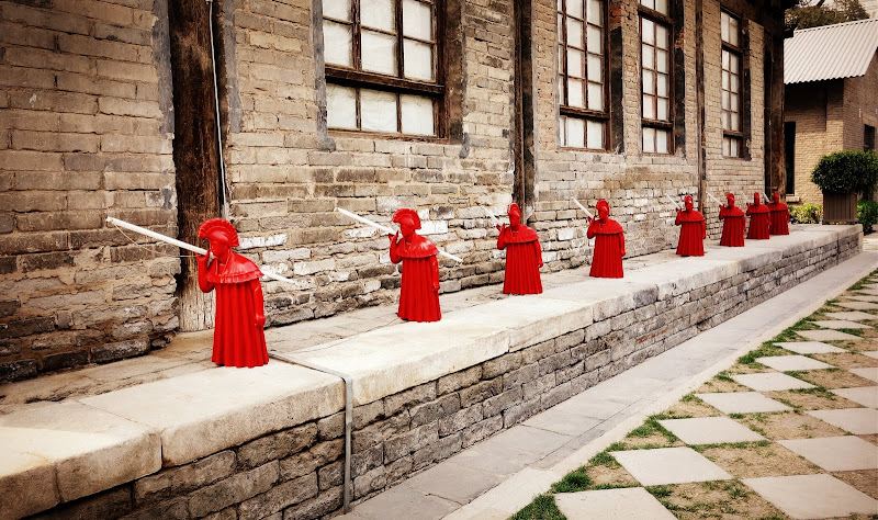 就是因為我們快吃完的時候,我就問waitress從餐廳要怎麼到捷運站,確認捷運站真的很遠沒辦法用走的到達之後,我問她們說,我們要離開時她們是否可以幫我們叫計程車,她回答說她們可以幫我們叫車,但是她們也是走去外面攔車子,因為這邊胡同巷弄計乘車通常不願意進來,所以幫我們叫可能要很久之類的。我就說,喔沒關係,我們可以慢慢等,如果沒有叫車進來也沒關係,我們可以走出去再叫叫計程車。我本來心裡的盤算是吃完之後要好好看這些旁邊的建築的。所以想說等差不多要看完的時候再請她幫忙叫車。如果要等一陣子也沒關係。結果,沒想到就在我們快吃完的時候,我詢問的waitress跟我說她剛剛就已經請人去外面幫我們叫車了,我心想糟了,她怎麼這麼熱心直接就幫我叫車,也沒有先跟我確認到底要不要先叫車啊! 我們甜點吃那麼慢,萬一車子很快就來怎麼辦。結果,車子真的沒有很久之後就已經來了,因為胡同也不方便停車,計程車司機也沒有耐心等,所以就一直催我們要上車了,無奈之下我只好匆匆走走看看一下沒有能好好參觀就離開了。  其實服務人員真的是很熱心也是好意,而且她們還自己多付了司機一些小費,司機才願意開進來接我們,可是,我那麼難得來到這個這麼吸引我的地方,沒辦法好好參觀就必須離開還是讓我有點失落和懊惱啊。不過還好還是有稍微繞一下拍拍照,雖然蠻匆忙的。(早知道吃到一半在等餐的時候就應該先出去走一走拍拍照,不要一直坐著肚子也比較不會那麼脹 XD)