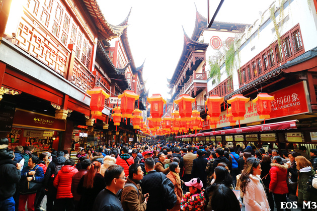 來豫園商城,恰逢元宵節,人爆多!喜氣洋洋的紅燈籠高高掛,笑臉盈盈的賞燈遊人擠呀擠。