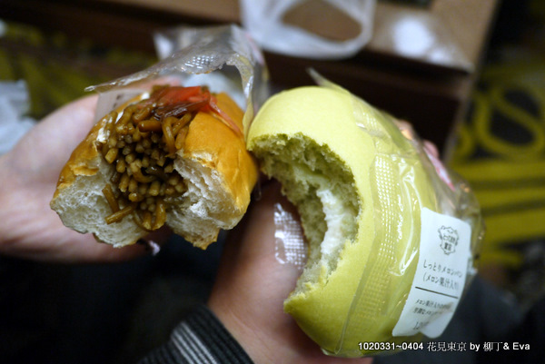 在附近的LAWSON買的早餐,我買了炒麵麵包與香蕉蛋糕,柳丁則買巧克力蛋糕及哈密瓜麵包。