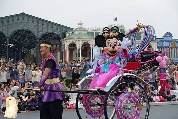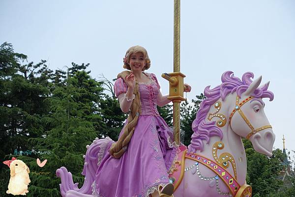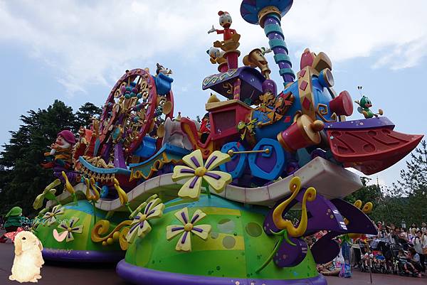 Disney 嘉年華遊行來了!!!! 雖然花車還沒到,但是聽見歡樂的Disney音樂 就超級 High!!!!