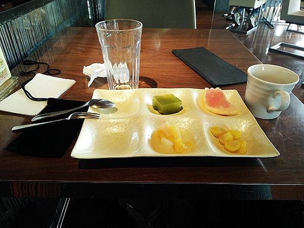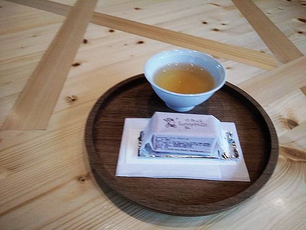 這邊跟台灣一樣會奉上一杯茶及一整塊的鳳梨酥。
