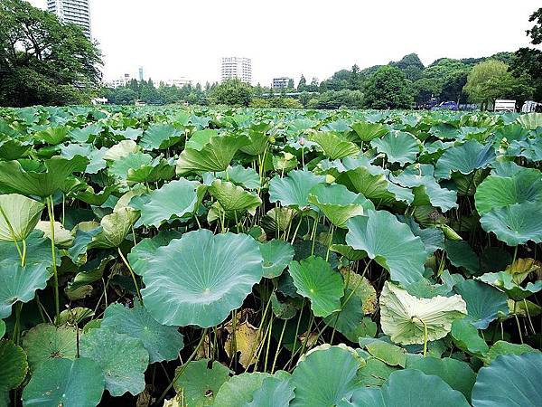 上野公園裡面還有一個很大的池叫不忍池,我去的時候剛好都開著滿滿荷葉的盛況。