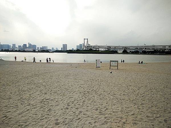台場海濱公園這裡很適合全家一起來這邊玩水,在這裡可以看到很多爸爸媽媽會帶著小朋友來這裡推沙子跟玩水。