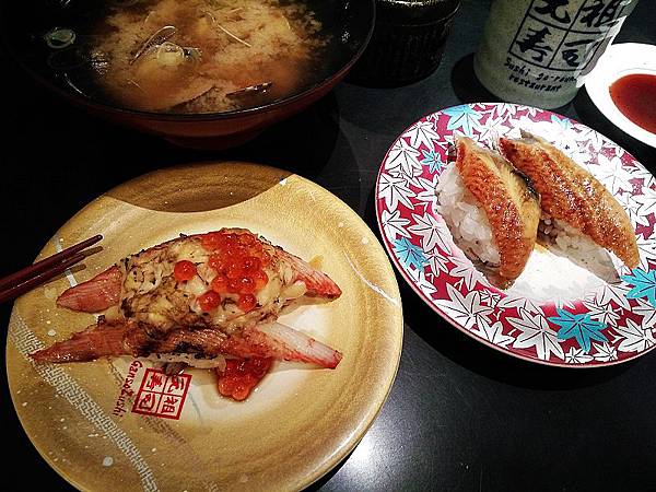 首先可以看到這是一家迴轉壽司店,如果你不想拿轉盤上的,也可以跟師傅直接點菜,他會現做給你,另外有提供中文服務人員,所以語言上不用擔心。價錢是以盤子的顏色花樣來區分。