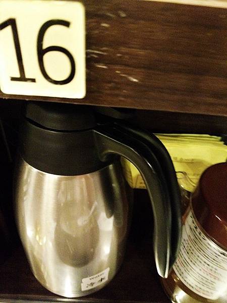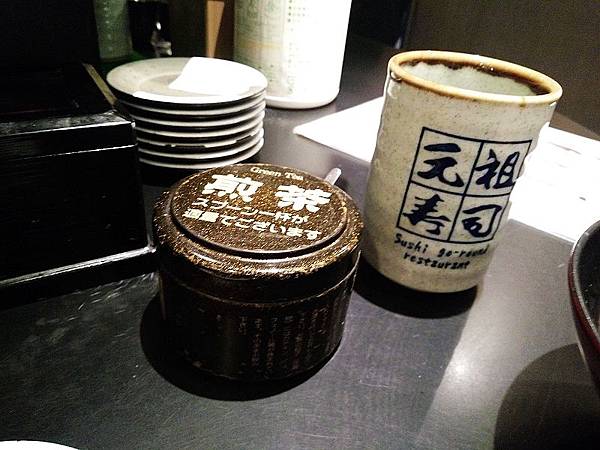 每個座位上都有一罐煎茶粉及水龍頭,按一下就會跑出熱水,這時放一下煎茶粉在杯子裡就可以沖熱水泡來喝。