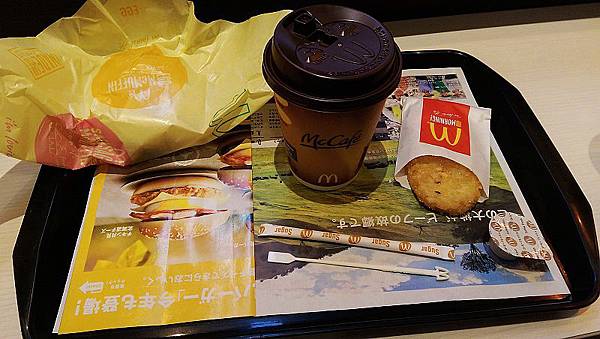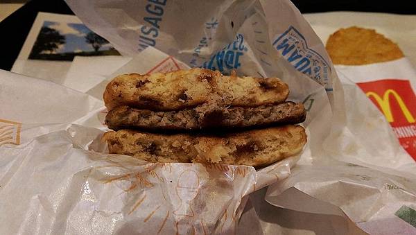 有時早餐不知道要吃什麼的時候,可以來吃看看麥當勞,另外值得推薦的是早餐有一個鬆餅外皮系列的漢堡,強烈建議要點這個。