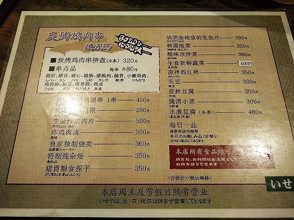 另外從宮崎駿美術館走到吉祥寺的路上會經過一家串燒店,這家主打一串只要80元的串燒,不過老實講他們的串燒都乾乾的,而且白肉好多不好咬,下次想點她們家的燒賣試看看。