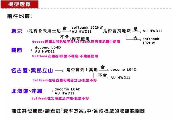 Eva Kang wrote:關於地區選擇機型問題...(恕刪) 想請教各位朋友!目前小弟的是SONY TX 在前面的討論有看到SONY會有問題無法連線Wi-Ho!想請問的是有網友可以建議選擇那一間和那一機型呢?小弟的目的地是京阪神!謝謝!