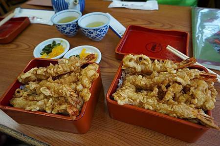 三定 特上天丼(2,540円),這家在雷門旁邊,份量很多,這個價格吃不飽會抓狂,提供的熱抹茶很好喝