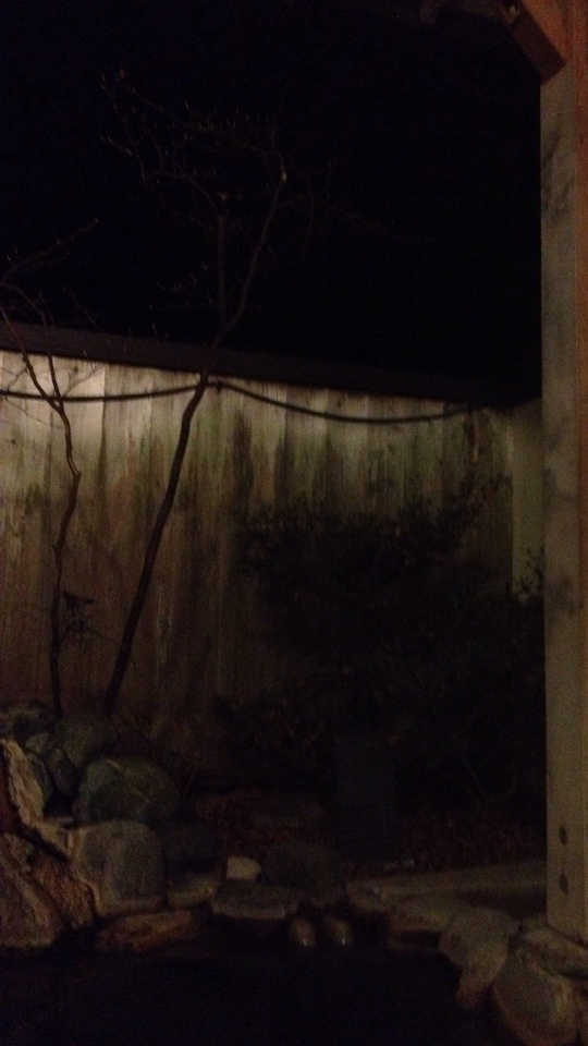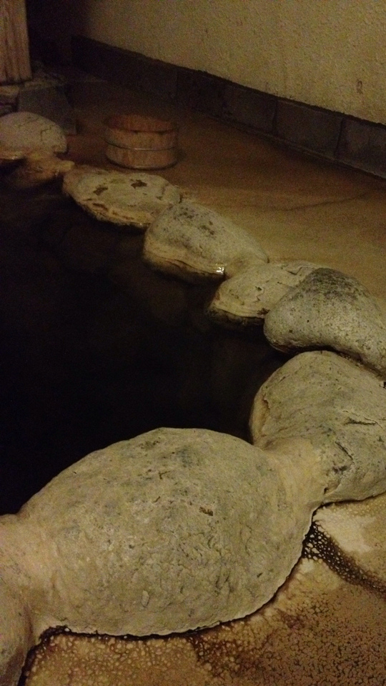 從大廳到湯屋會經過一個小庭院、差不多五秒就可以走完的路程,但這一段路卻讓人冰凍的想尖叫了>口< 湯屋其實算半露天,有棚子而已,如果你坐在池裡面就感覺不到室外空氣的寒冷了,但我在池邊閒晃只覺得越來越冷....