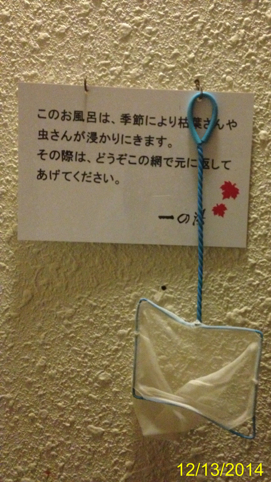 半露天也許會飆來葉子或小蟲子在水上,岸邊有個小撈網讓房客自己自己清潔;淋浴的地方就在湯屋角落,我覺得有自己泡湯的環境還真不賴。