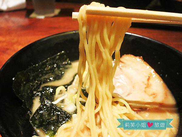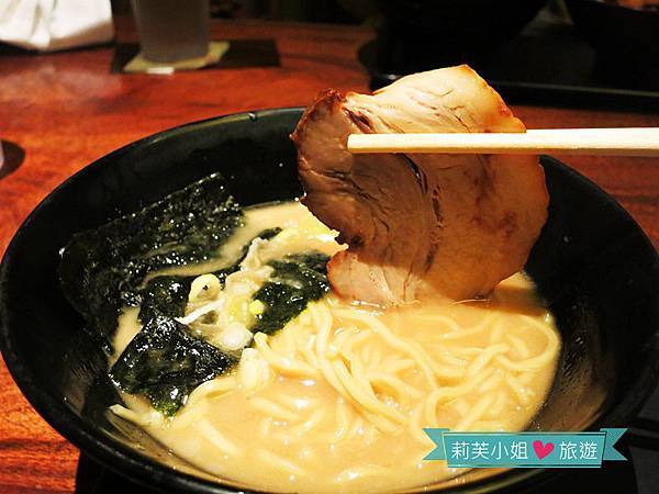 偏硬的麵條搭配濃郁的豚骨醬油湯頭,讓人忍不住大口吃麵喝湯,邊吃邊學日本人發出聲音來。