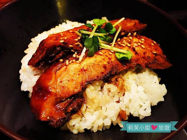 另一份主餐小份的烤雞肉飯,提供兩塊帶皮的雞肉,偏甜的醬汁與灑落的白芝麻提升了雞肉的香氣層次。
